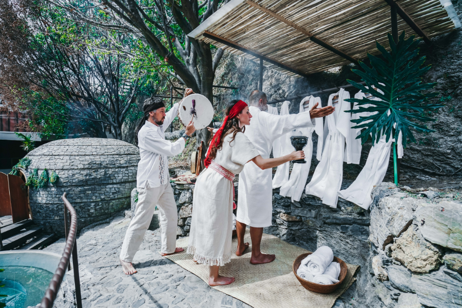 Su arquitectura se fusiona con la naturaleza, ofreciendo un ambiente de paz y armonía que invita a la introspección. Desde el momento en que llegas, el lugar te envuelve en una atmósfera de serenidad: el aroma del copal, el sonido de los cuencos y rituales de bienvenida crean una experiencia mística que marca el inicio de un viaje interno profundo.